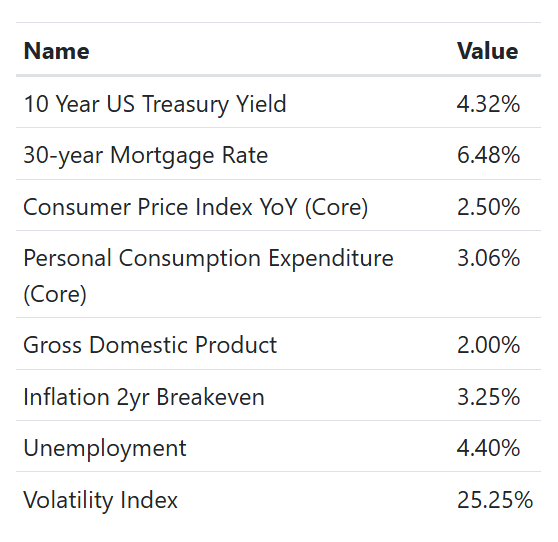 The U.S. economy still looks resilient but is showing signs of late‑cycle moderation. Core CPI is running at 2.5% year‑on‑year and Core PCE around 3.06%, indicating inflation remains above target but continues to drift lower. Real GDP growth moderated to 2% annualized, consistent with a slowing but still‑positive trajectory. The unemployment rate held steady at 4.4%, while job creation cooled amid corporate caution and higher borrowing costs. Mortgage rates ticked up again, with the average 30‑year fixed rate climbing to 6.48%, dampening existing‑home sales. Market‑based inflation expectations rose alongside oil prices, pushing the 2‑year breakeven to ~3.24%. Risk sentiment deteriorated, and the VIX jumped to 25.25, reflecting investors’ anxiety about geopolitical escalation and policy uncertainty.